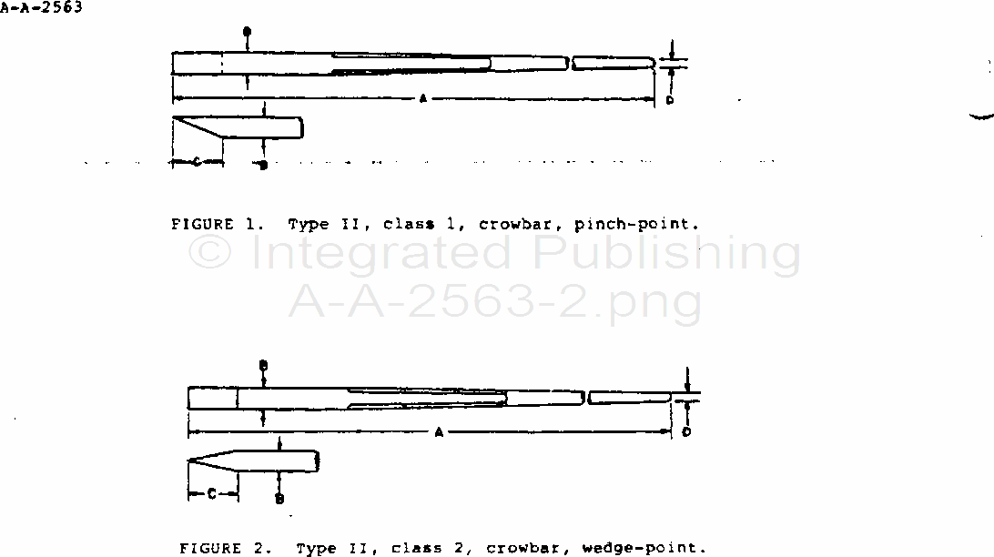 Class 2, wedge-point. The formed end of class 2 bars shall have square sides with a double-beveled edge. The bars shall conform to table I and be similar to figure 2.