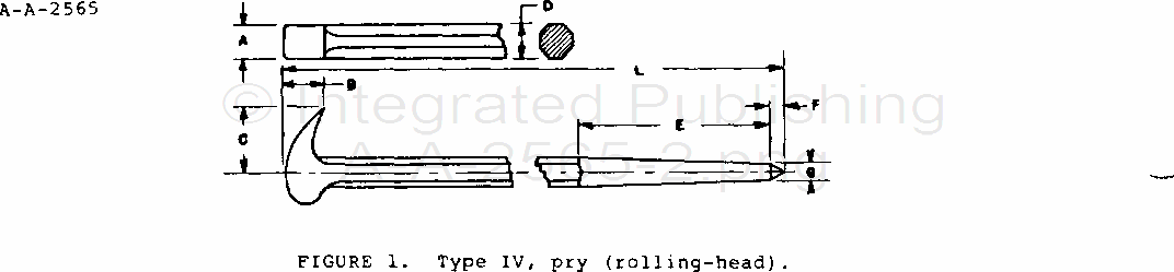 Physical test. The rolling head of the Type IV bars shall be rigidly secured by a vise or clamp in a manner to apply a load to straighten the angular hook. The test load specified in table I shall be applied to the body 4-3/4 inches from the tapered end in a direction perpendicular to the body. After applying the load, the pry bar shall not take permanent set and shall not fracture when so tested. The tapered end shall also be subjected to the same test except 4-3/4 inches of the tapered end shall be clamped and the load applied one inch from the rolling-head end.