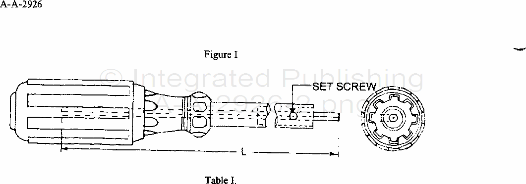 3.3 Chuck. The chuck shall hold replaceable, adjustable, hexagon bits, and shall be provided with a set screw for locking the bit in the required position. An L-type hexagon key appropriately sized for the blade securing set screw shall be furnished with each tool.
